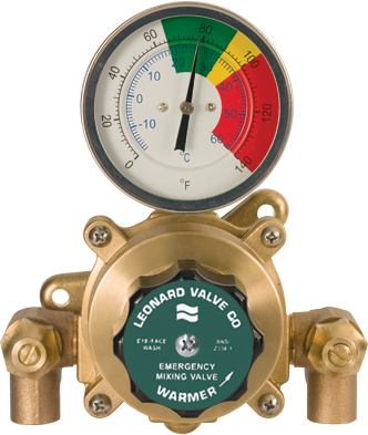 ECO-MIX ™ DURA-trol® solid bimetal thermostat directly linked to valve porting to control the intake of hot and cold water and compensate for supply temperature and pressure fluctuations. DURA-trol is highly responsive and cannot be damaged by extremes in temperature. Thermostatic Mixing Valve can be set to the correct temperature for the application. Locking type temperature regulator to prevent accidental movement set for 85ºF (29ºC), Recommended Hot Inlet Temperature 140°F. Mixing valve will close down on failure of cold water supply, Mixing Valve with special internal cold water bypass capable of 4 GPM (15 l/min) @ 30 PSI (2.1 Bar) upon failure of hot water supply. Adjustable high temperature limit stop set for 90ºF (32ºC), Full 1/2” top or bottom inlets and 1/2” top outlet, Integral wall support, Dial thermometer (range 0 to 140ºF, -10 to 60ºC), Rough bronze finish. Union angle checkstops on inlets To determine the amount of Hot Water needed to maintain a steady outlet temperature for 15 minutes, click Hot Water Requirements. This guide is not meant to be used as a means to size the hot water heaters but rather to illustrate consumption. This product is certified to meet Low Lead requirements of wetted surface area containing less than 0.25% lead by weight