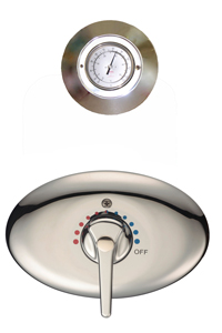 Tub/shower installation, Copper encapsulated thermostat assembly with brass shuttle, compensates for temperature fluctuations induced by water