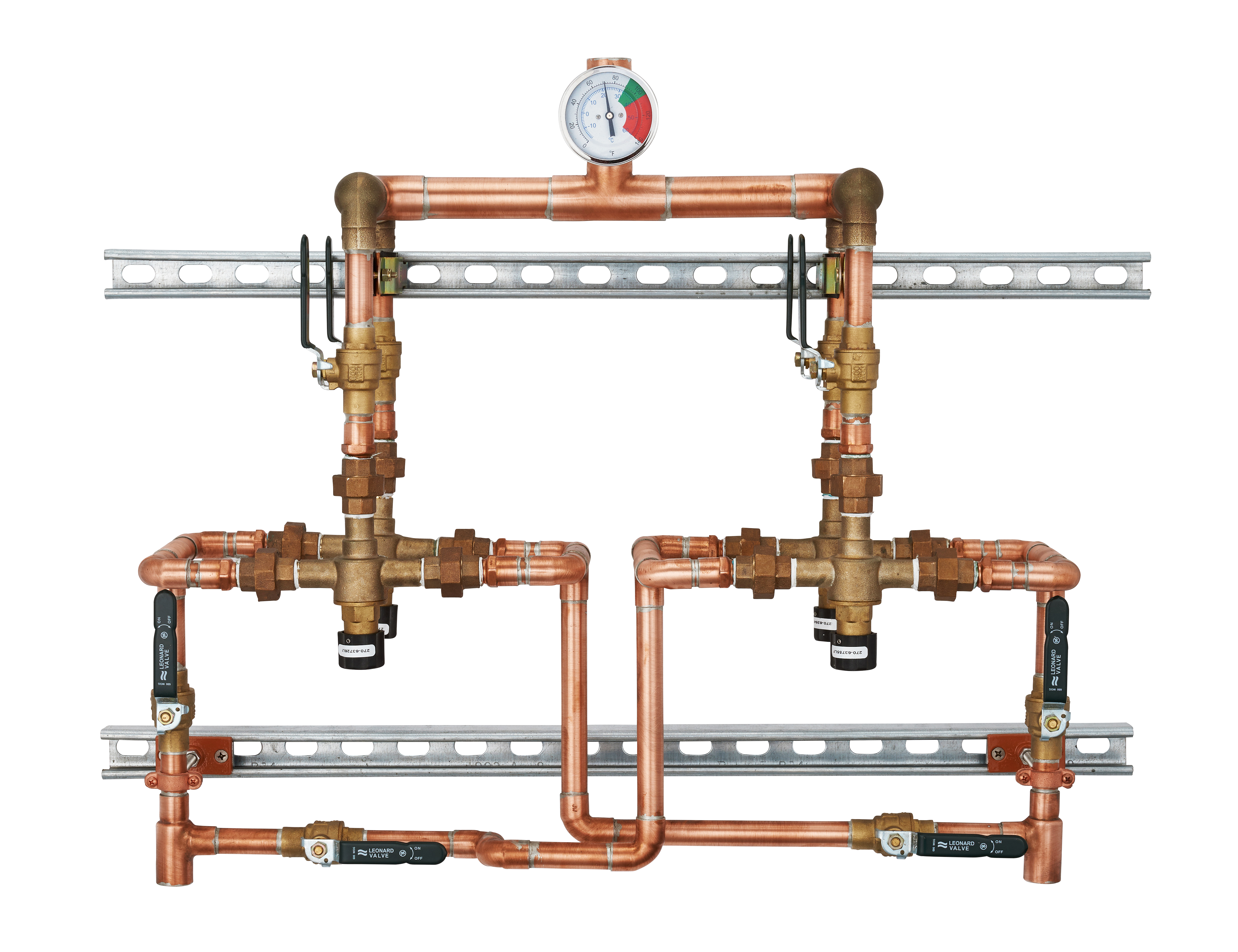 •Dial thermometer (range 0 to 140°F, -10 to 60°C) on mixed water outlet of the system