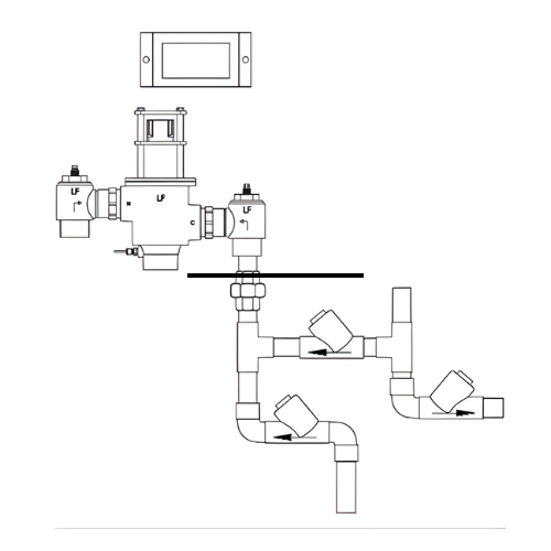 • Digital Mixing Valve with check stops, integral RTD Sensor, return piping assembly