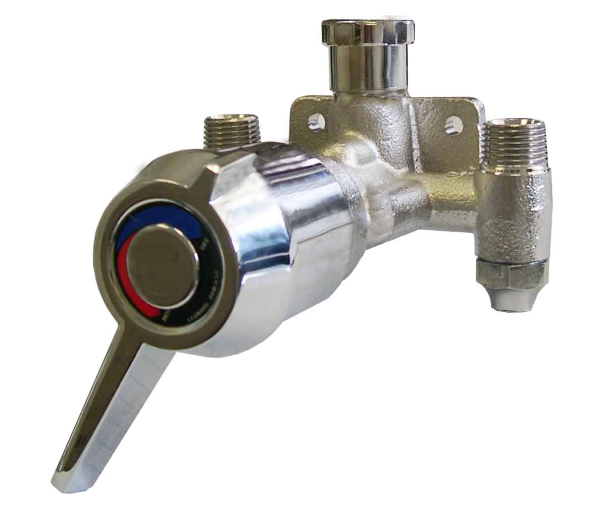 The PAM®-II-E shower valve is designed with a stainless steel pressure balancing piston, bronze interior,, and cast bronze body. Aquatrol automatically shuts down the hot and cold supply, should one or the other fail. An ADA compliant lever handle and color coded dial plate, Angle checkstops and integral wall mounting bracket are included.